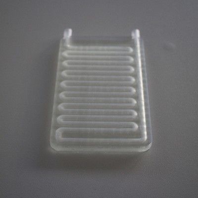 We were commissioned to design a medical device, which was achieved by designing a closed cooling plate with the thinnest possible wall thickness, using the most extensive pipe system able to circulate cooling fluid inside, and it was produced with an SLA printer. Transparency was also a criterion to allow observation of the coolant flow, which was achieved with FormLabs’ transparent resin. The cooling plates function as accessories to a device for carrying out various biological experiments, so the design had to take into account the basic needs of the device for efficient operation.