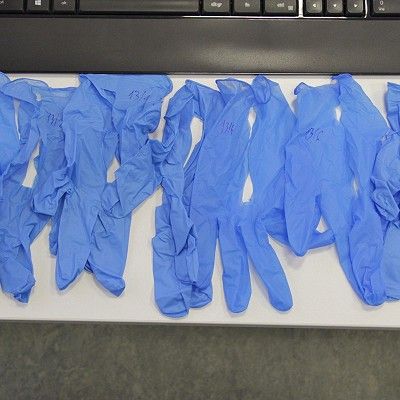 The UP-3D Centre has performed tensile testing of rubber gloves for medical use according to EN 455-2:2015 protocol. The customer provided 12 boxes of gloves from the same manufacturer in different colours and sizes. The gloves were non-sterile, latex-free, ambidextrous, disposable and powder-free. The test pieces were cut out of the gloves using a punching template with a geometry as described in the standard. The purpose of the material test was to examine the tensile strength and elongation parameters of the glove sets.